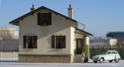 Série d’images d’un lot de maisons et pavillons montés peints et patinés par Didier Lemaitre. Commande client.