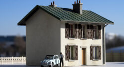 Chaque bâtiment a été modifié afin de lui donner un aspect montagnard, selon les souhaits du client. Des détails comme les volets en bois avec barres et écharpes, ou encore les surfaces de toiture plus grandes et en bac-Acier ou tôle, les linteaux en pierre ont permis un rendu très différent de la version d’origine de chaque maquette.
