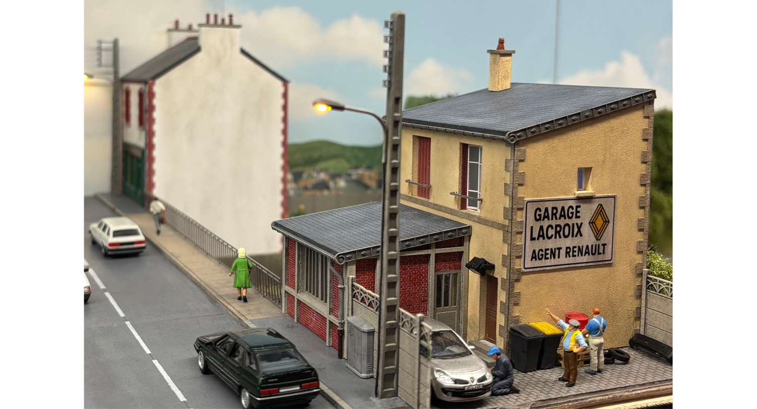 Merci Cités Miniatures pour tous ces beaux kits, souvent ‘customisés’ (pont, maisons, lampisterie…) ainsi que l’usinage de la nouvelle remise XXL en brique !
